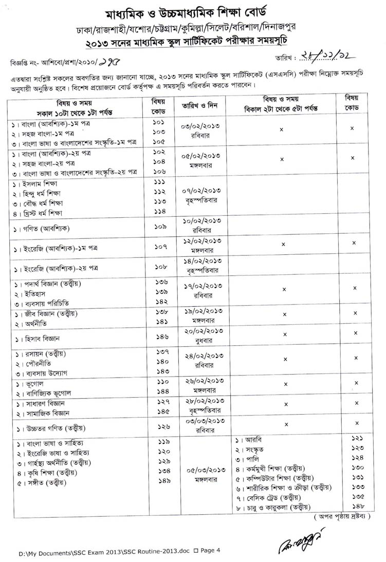SSC Routine 2013 published on November 28, 2012 by http://www.educationboard.gov.bd/ . The Exam will be start on February 3, 2013.